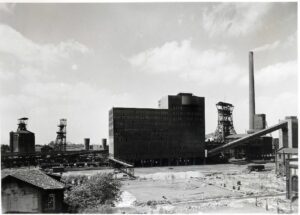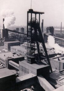 Schacht 4: Errichtung eines neuen Förderturmes in Stahlbeton-Bauweise nach den Plänen des Architekten W. A. Gorgen aus Düsseldorf. Durchschlag Westfeld mit Schacht 1 – 6 und Ostfeld. Schacht 5 UF bis 8. Sohle und weiterteufen.